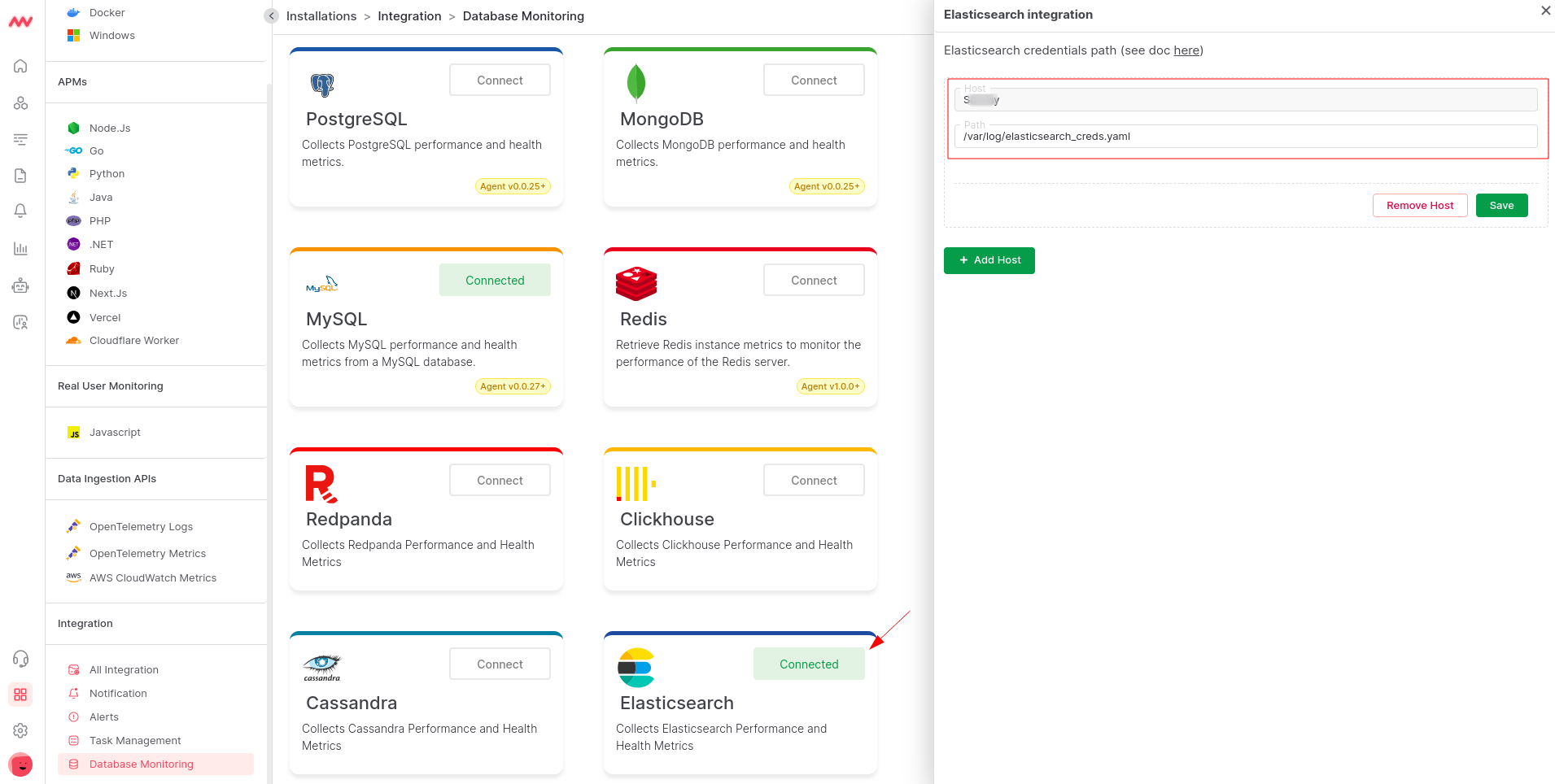 Add a host machine from the dropdown list, input the credential path from Step 1, and SaveVisualize Your Data