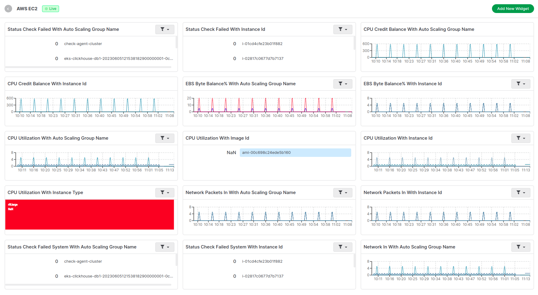 We have created default dashboards for all the popular AWS services. Each dashboard consists a good amount of graphs representing all the important metrics for that particular namespace. Here is one sample dashboard for EC2 namespace.