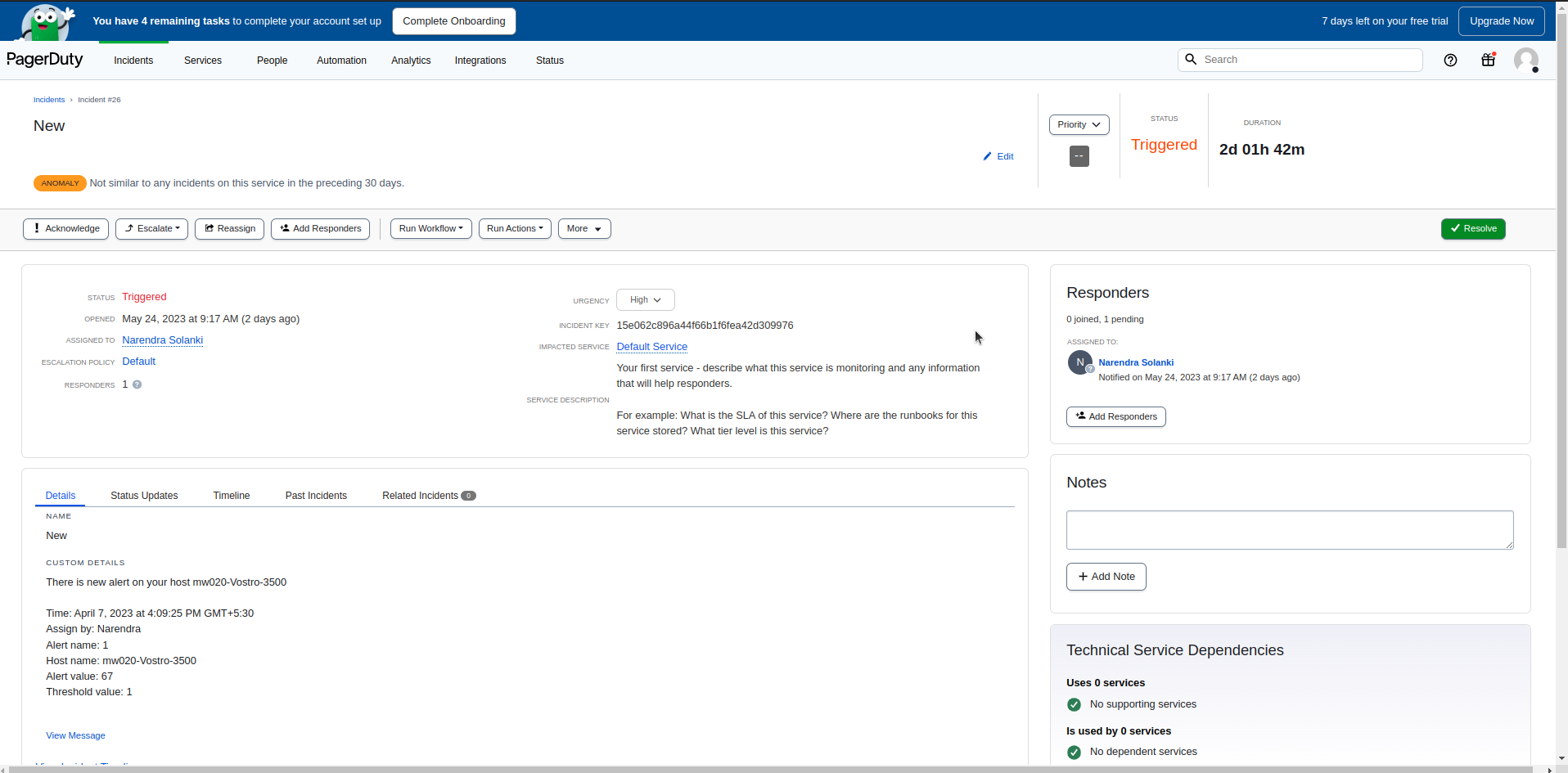 - The incident will be created in PagerDuty and can be assigned to the appropriate team member.