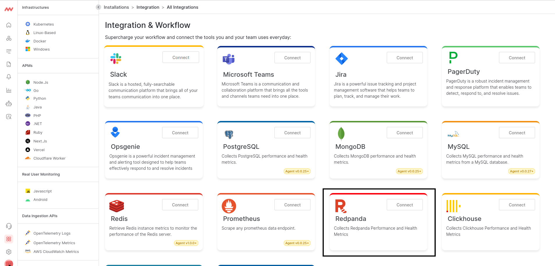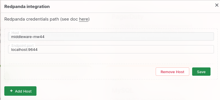 Login to your Middleware account, navigate to the Redpanda integration, and connect Redpanda